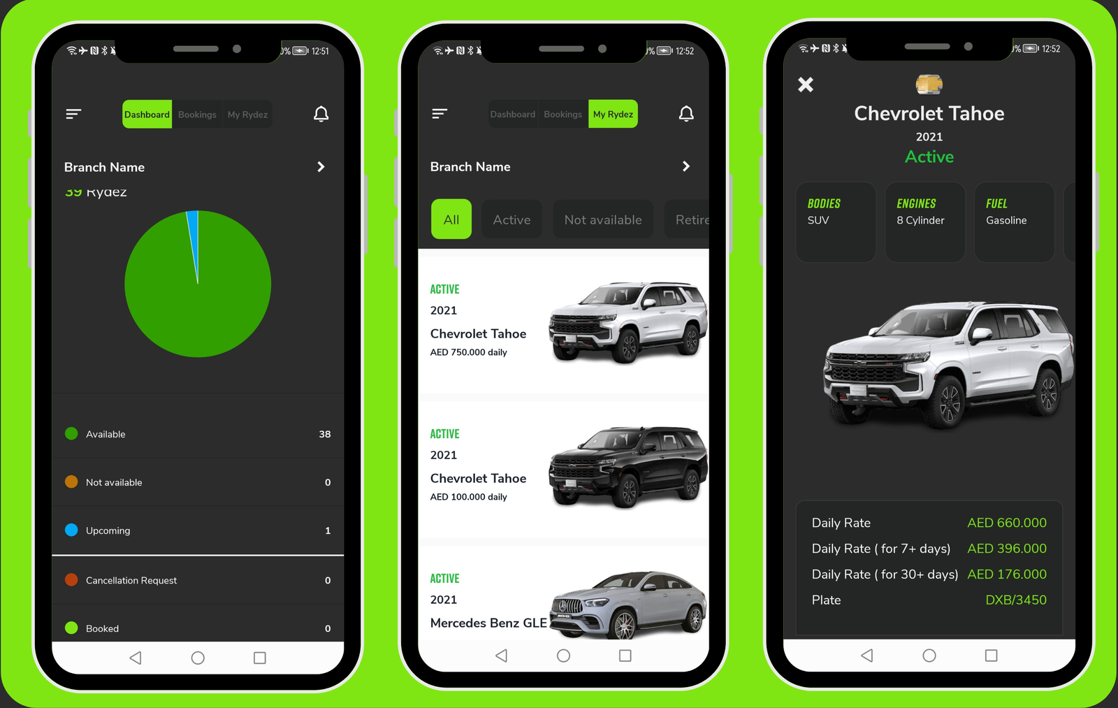 Effortlessly locate the requested car by applying filters based on branch, and status (rented, available, unavailable, upcoming pickup/delivery).